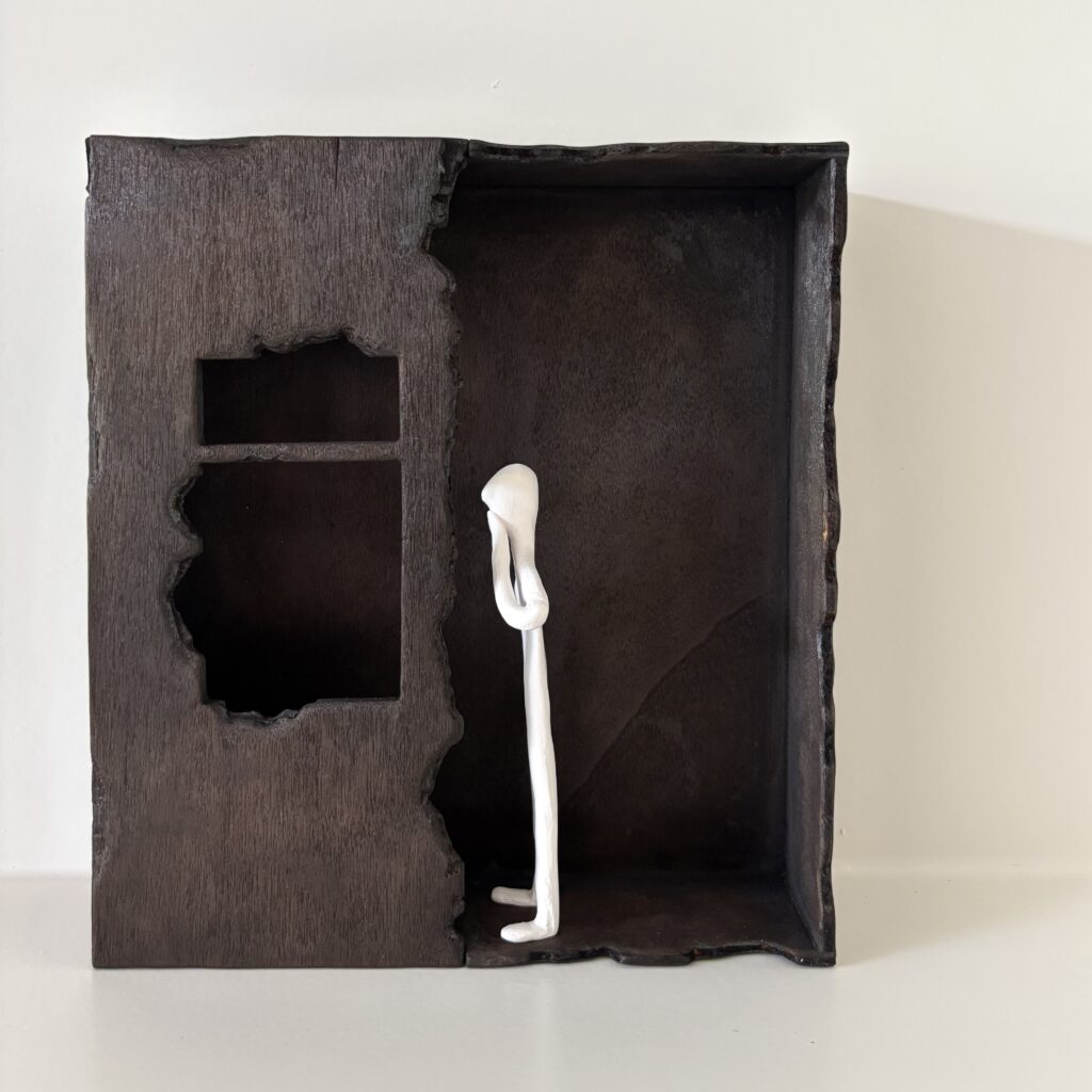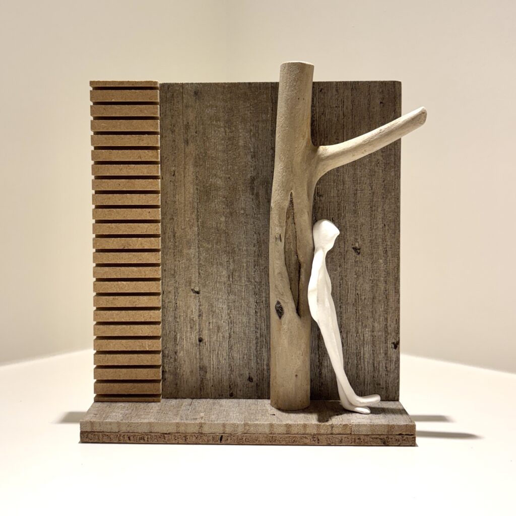 uit de wind 2 | afvalhout, keramiek | h 16 cm | 2025